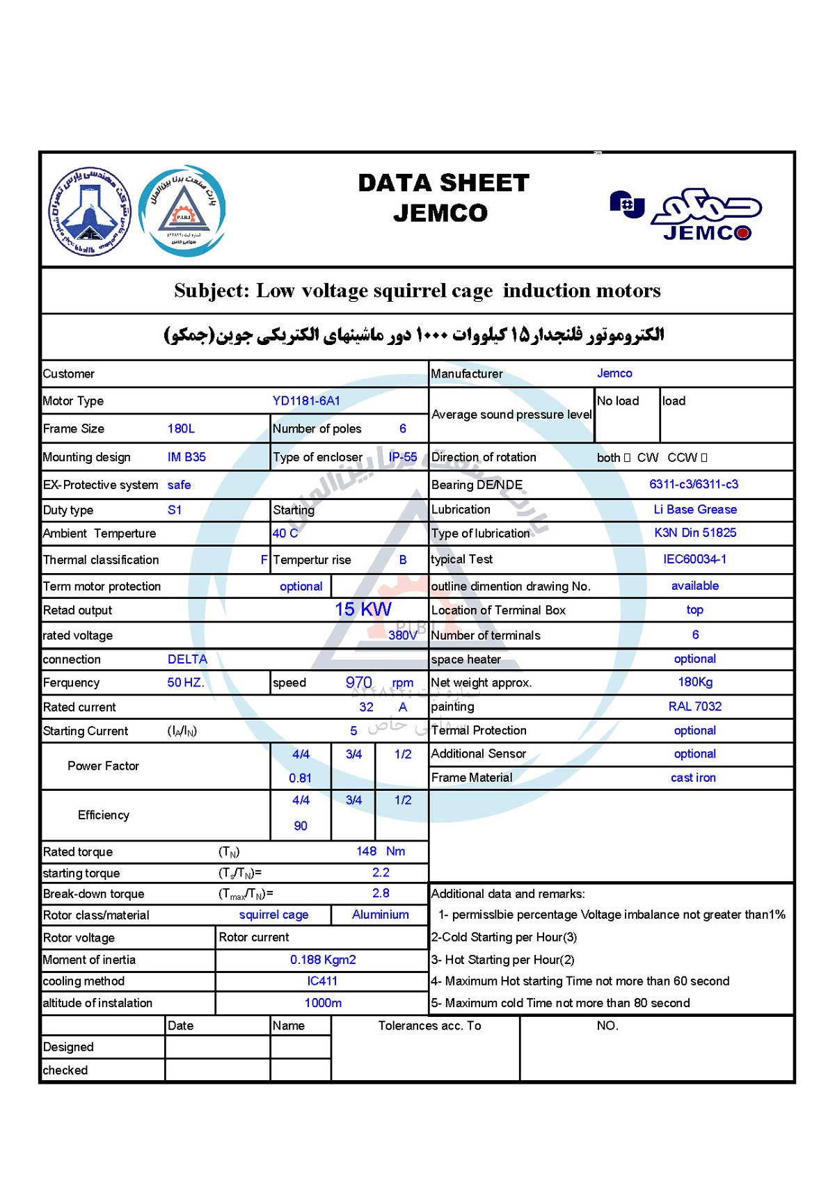 برچسب: الکتروموتورپایهفلنجدارجمکو, الکتروموتورجمکو 1000rpm