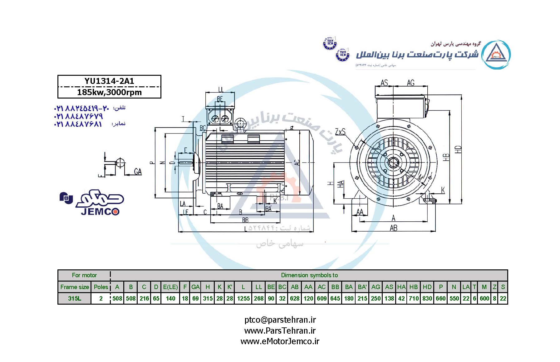 قیمت و کاتالوک تفکیکی شامل DataSheet و Drawing الکتروموتور جمکو سریYD فشارضعیف YU1314-2A1 مدل B35 پایهفلنجدار، قدرت 185(کیلووات) و سرعت 3000(دور در دقیقه). آخرین بروزرسانی: فروردین1402